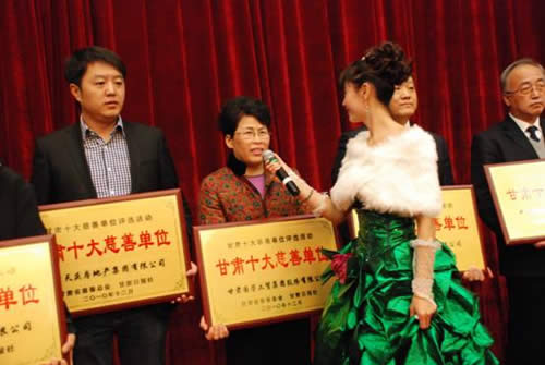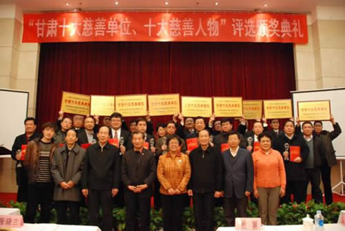 由甘肅省慈善總會和甘肅日報社聯(lián)合主辦、每日甘肅網(wǎng)獨家承辦的2010年甘肅省十大“慈善單位”、“慈善人物”頒獎典禮于2010年12月28日在蘭州舉行。經(jīng)過激烈角逐,甘肅國芳工貿集團股份有限公司榮幸地被評為“甘肅十大慈善單位”之一。