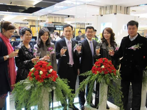 各位領(lǐng)導(dǎo)舉杯祝賀迪奧專柜興業(yè)長新