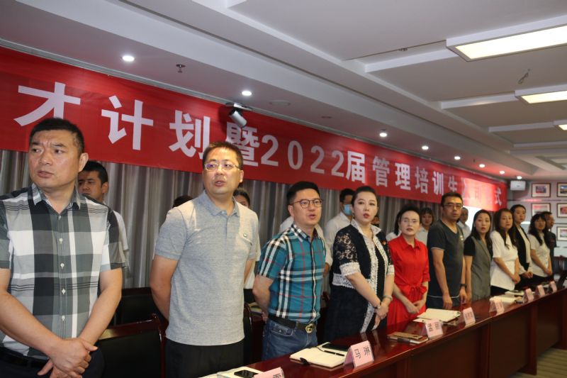 迎著初夏的朝陽,班旗授旗儀式隆重舉行,2021屆管培生班長杜凱源、副班長馬喜梅代表2021屆全體管培生進行授旗儀式,2022屆管培生代表劉書豪、羅倩接過莊嚴的旗幟并進行宣誓。這面活力四射,寓意深遠的旗幟,凝聚了往屆所有管理培訓(xùn)生的智慧和心血,象征一個集體精神、主義、信仰,也是團體榮譽的標志。
