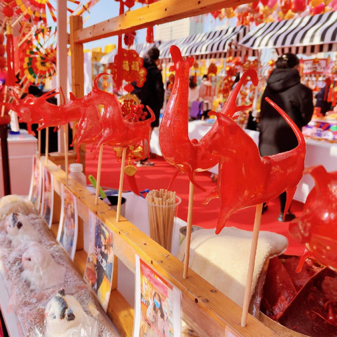 今天的喜慶,綿延著千百年傳統(tǒng)文化積淀的醇厚,綻放著文化創(chuàng)意與時(shí)俱進(jìn)的鮮活,活動(dòng)現(xiàn)場(chǎng)遍布著中華傳統(tǒng)文化的元素。手寫春聯(lián),翰墨飄香;巧手剪紙,剪藝傳情;草編藝術(shù),指尖乾坤;嘴吹糖人,栩栩如生;塑捏彩泥,惟妙惟肖;手繪糖畫,活靈活現(xiàn)。